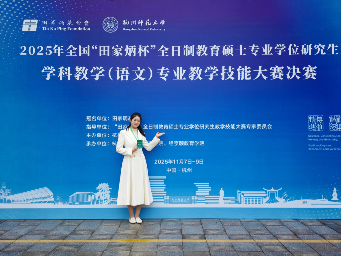 11月9日,2025年全国“田家炳杯”全日制教育硕士专业学位研究生学科教学(语文)专业教学技能大赛在浙江杭州圆满落幕。我院2024级学科教学(语文)专业硕士研究生戴琳琳凭借扎实的专业功底与出色的临场表现,成功斩获优秀奖。