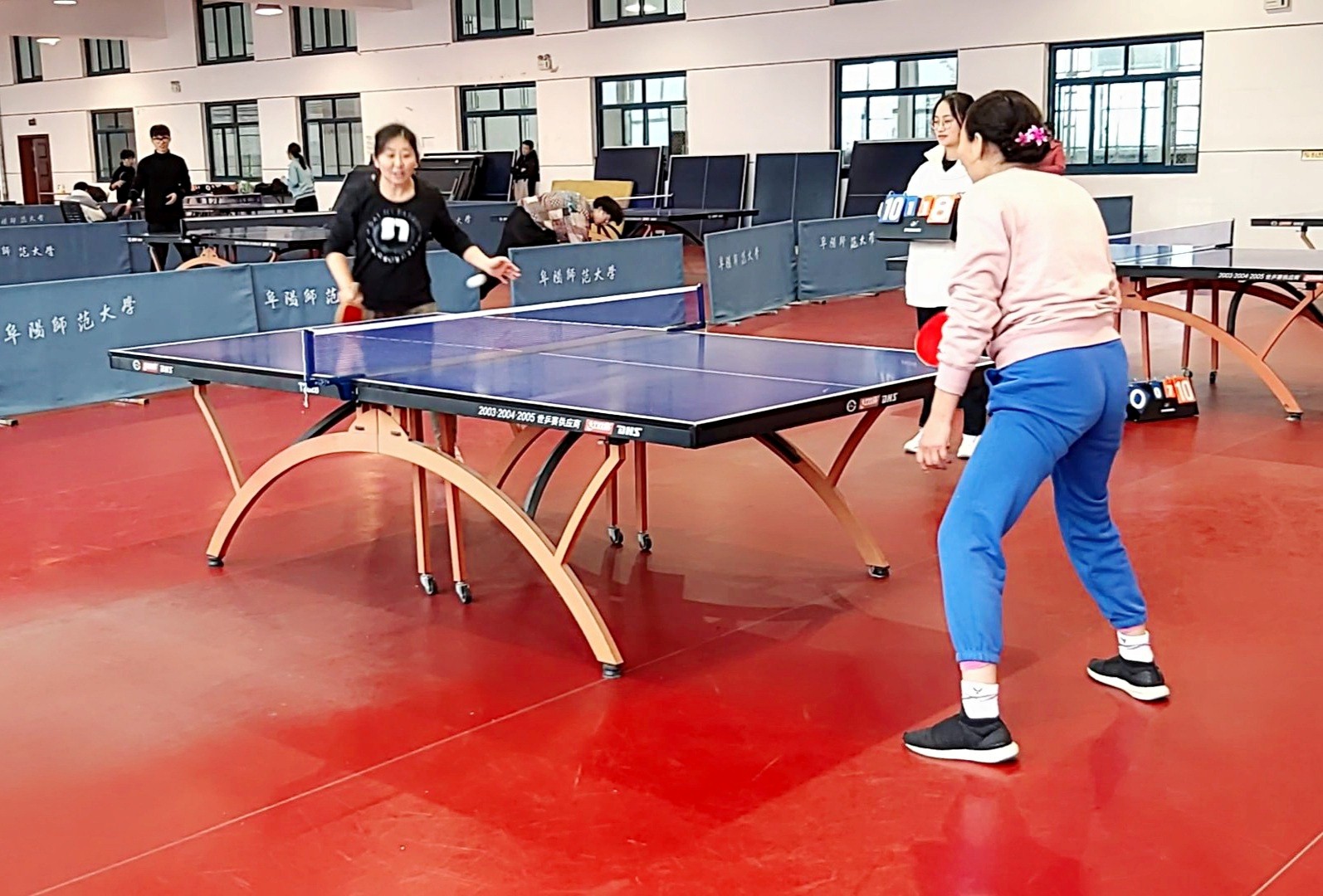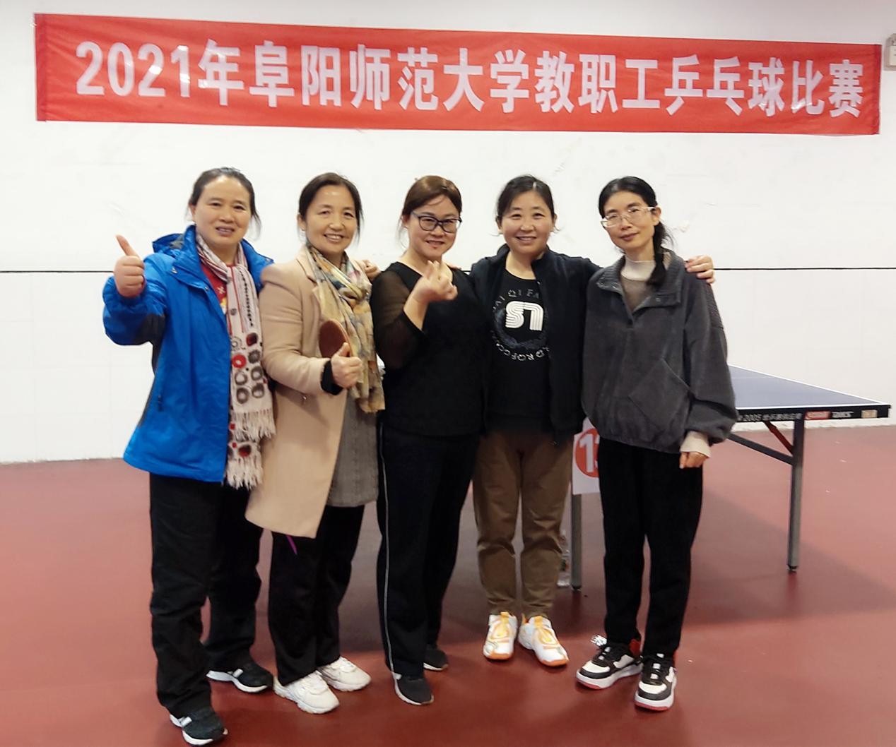 2021年12月11日,在校工会组织的学校乒乓球女子团体比赛中,以徐涛、高群、张云峰、杜红梅四位教师组成的文学院乒乓球女子团体队伍参赛。