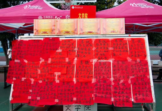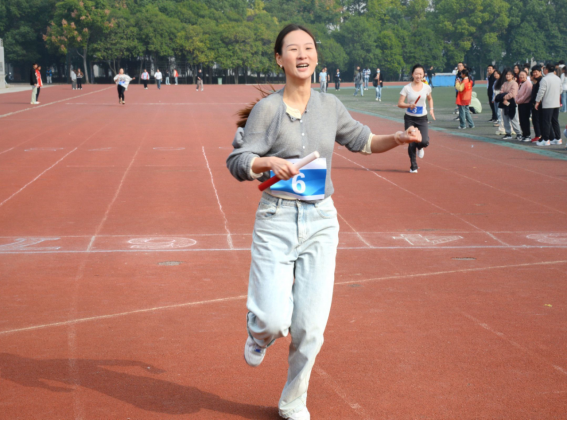 在本届运动会中,文学院师生积极参与了多项个人与团体项目,如跑步、跳远、接力赛等,他们全力以赴,在每一个项目中都展现出了非凡的精神风貌。在红色的跑道上、绿茵茵的操场中、金黄色的沙坑前,运动员们不断超越自我,坚持不懈。荣获女子100米决赛第一名的程彩芸这样说到:“能取得这样的成绩很高兴也很激动,希望明年在运动会中能够再创佳绩。”荣获男子800米决赛第三名的大四学生黄浩然在采访中说道:“这不仅仅是一场体育竞技,更像是一次我对大学时光的告别仪式。熟悉的赛道,熟悉的队员,激励着我拿出拼搏的精神和竞技的激情征战大学时代的最后一届运动会,再为文学院争得荣誉。”