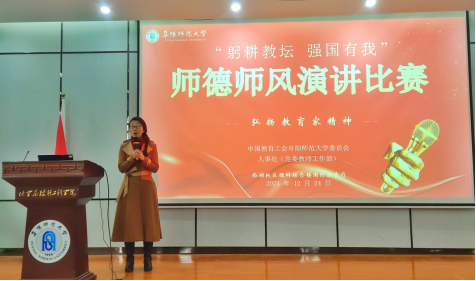 12月24日下午,由校工会和人事处(党委教师工作部)共同主办的“躬耕教坛 强国有我”师德师风演讲比赛圆满结束,文学院教师孙燕凭借出色的表现荣获二等奖。