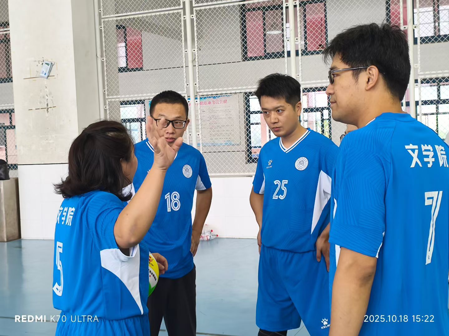 赛前,队员们利用课余时间集中训练、默契磨合,从战术配合到技术细节反复打磨,为比赛做好充分准备。比赛期间,文学院代表队始终以饱满的热情、昂扬的斗志投入每一场对决。