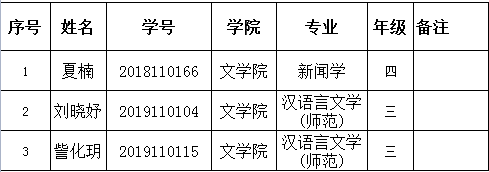 附:2020—2021学年文学院国家奖学金拟推荐人选名单