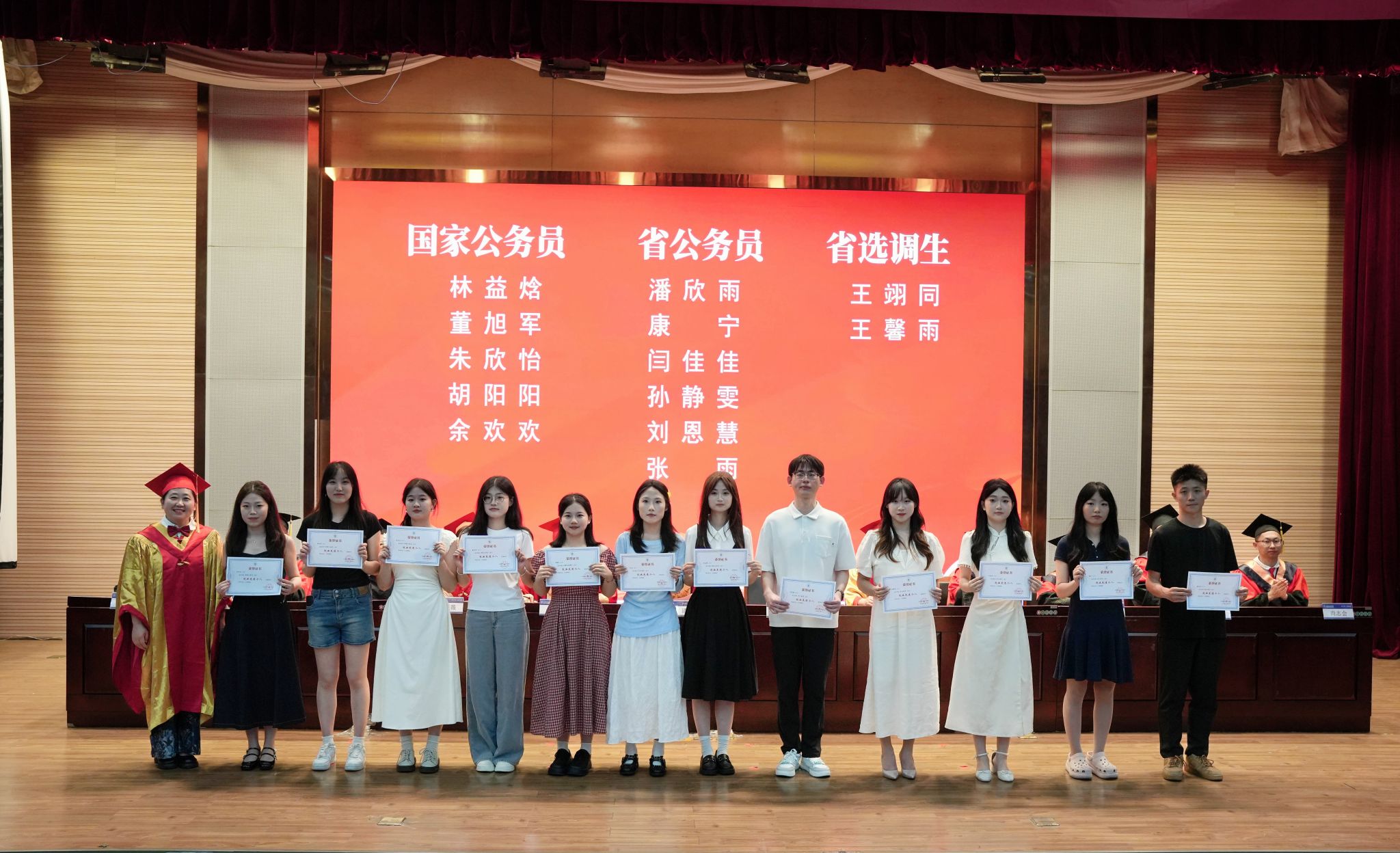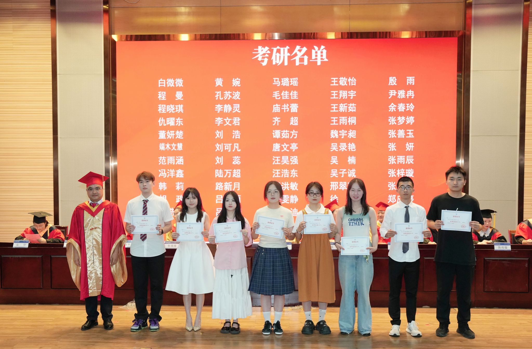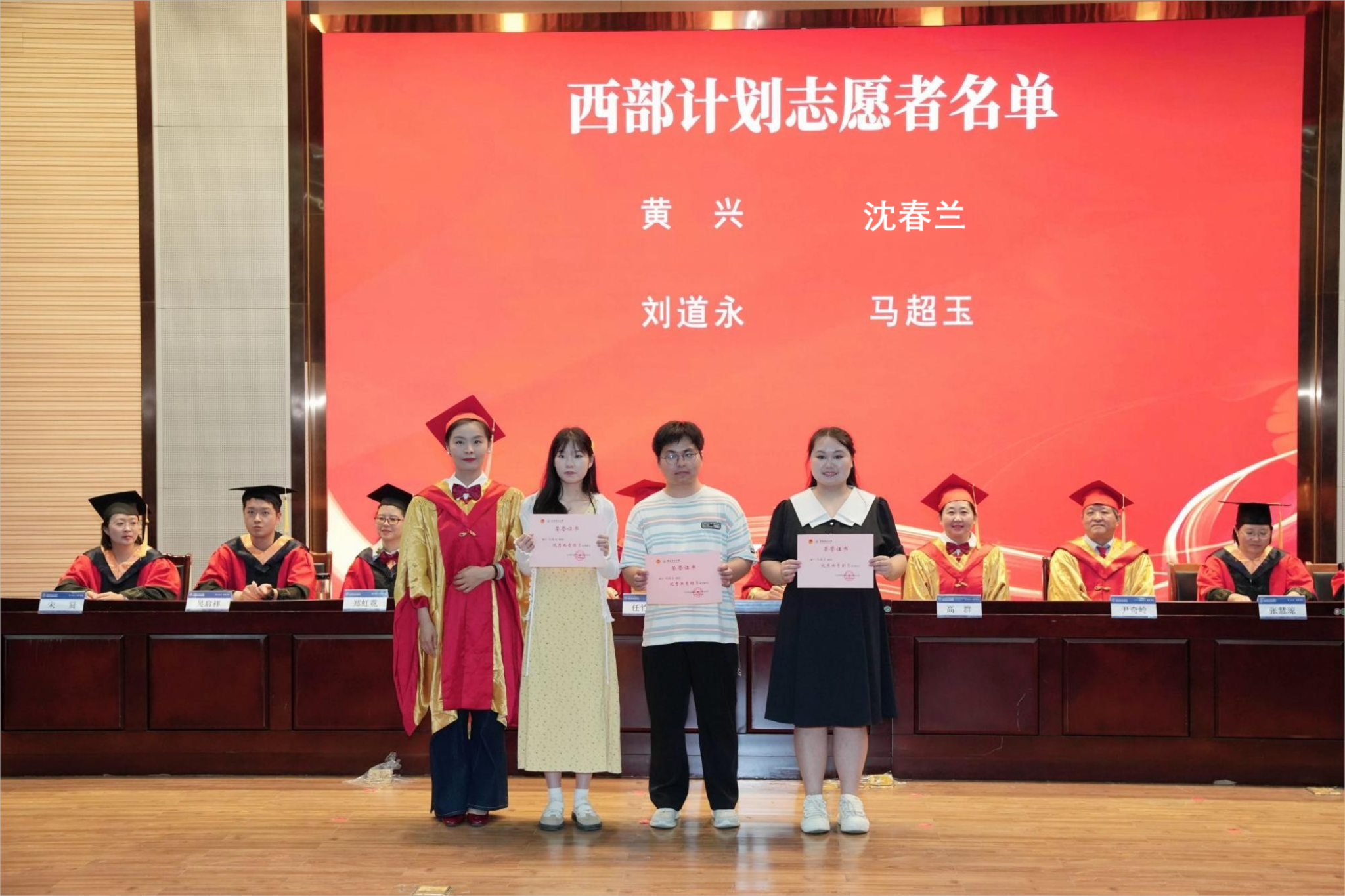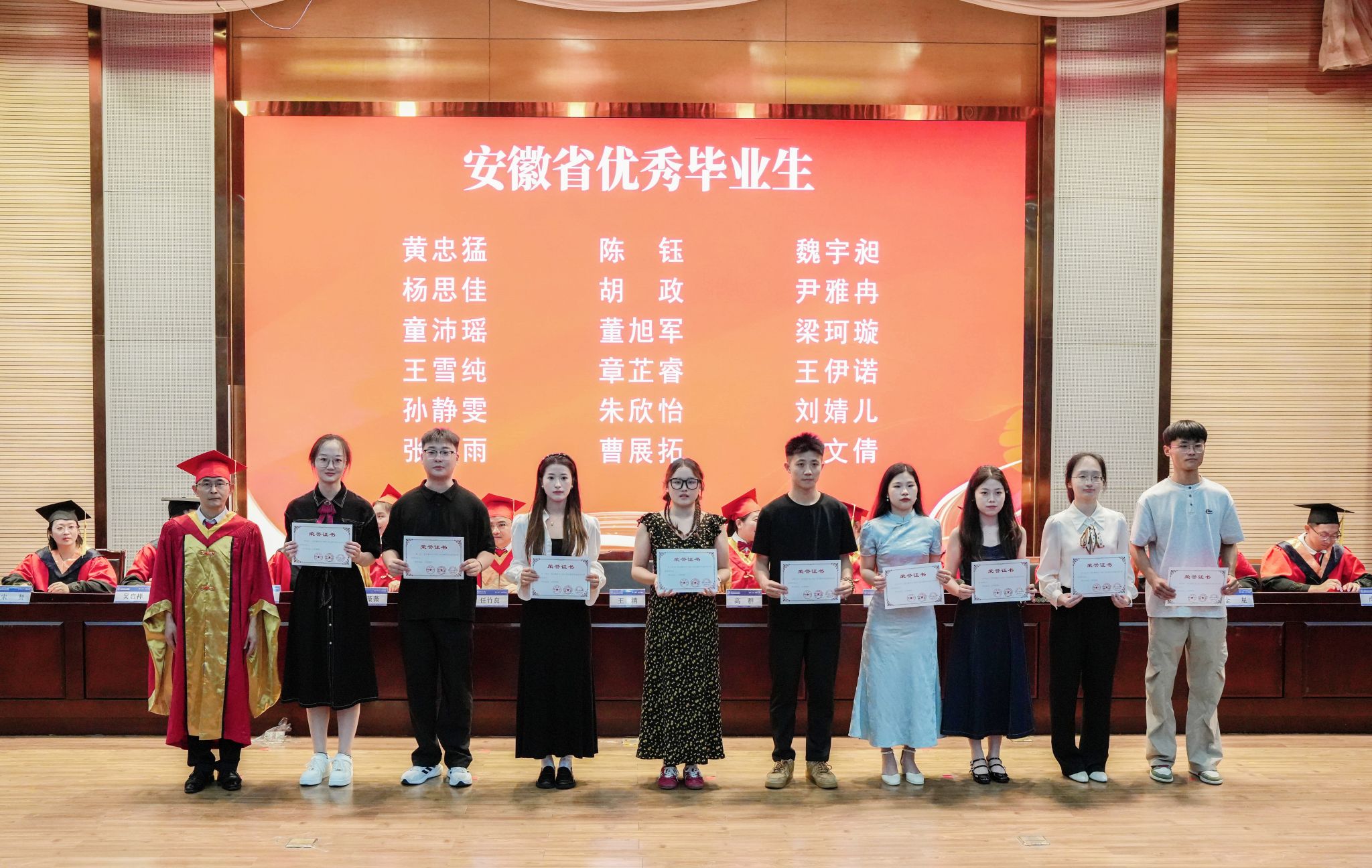 校党委常委、党委宣传部(统战部)常务副部长、文学院党委书记王清为安徽省优秀毕业生颁发荣誉证书;高群为2025届就业先进个人颁发荣誉证书;任竹良为2025届考研先进个人颁发荣誉证书;副院长尹奇岭为2025届校友联络员颁发聘书;副院长张薇薇为2025年西部计划志愿者颁发荣誉证书。