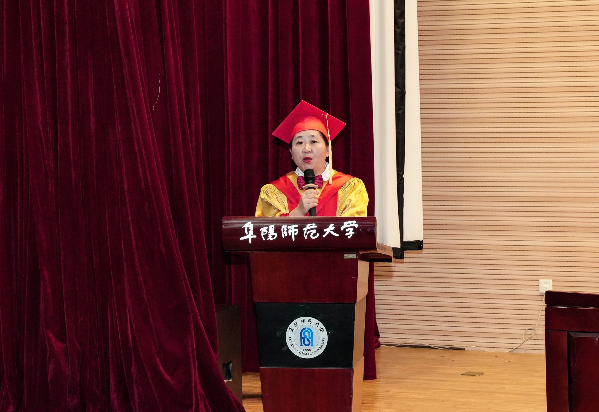 文学院院长高群致辞,向圆满完成学业的毕业生致以热烈祝贺。她回顾了同学们在学院的成长历程,肯定了大家在学术探索、学科竞赛等方面的成绩,寄语毕业生以文学为精神栖息地,在探索中发现自我,于平凡中收获幸福,书写属于自己的精彩华章,展现文学院学子的风采与担当。