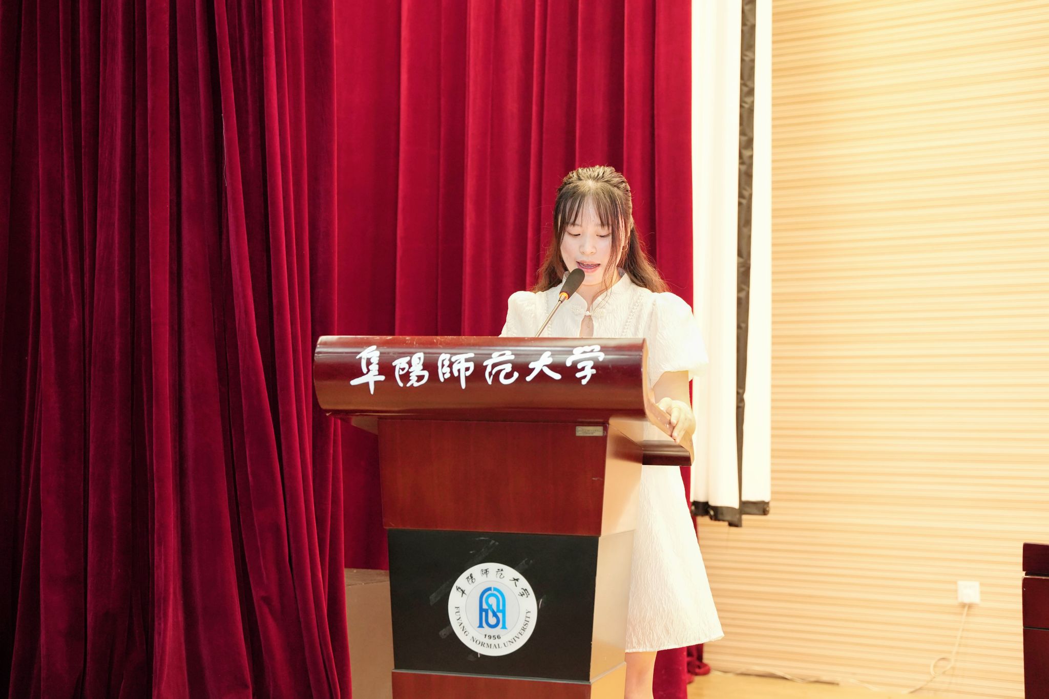 在校生代表邹雯雯表达对学长学姐的不舍与敬佩,他们严谨的求知精神、踏实坚持的品格及积极的态度,是学习的榜样,激励着在校生不断奋进。