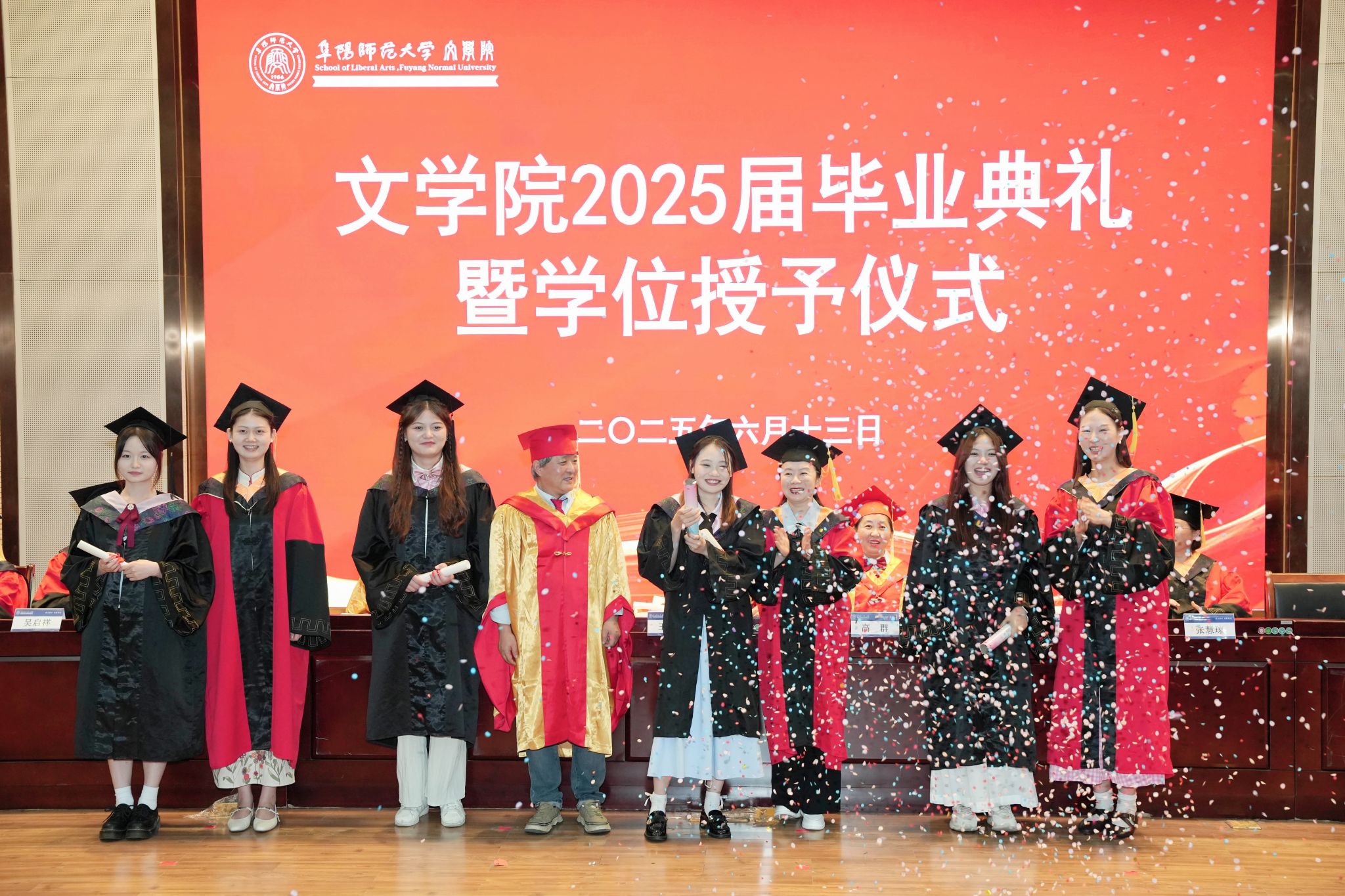 颍水长流文脉远,芸窗永照鹏翼新。四年文学院时光,学子们在“崇文养正 尚新致远”的院训指引下成长。如今扬帆起航,他们将带着文学院赋予的精神力量,挺膺担当时代使命,在奉献祖国、服务社会的伟大实践中书写壮丽篇章,让青春在新的征程中绽放光彩。祝愿2025届毕业生前程似锦,一路繁花!