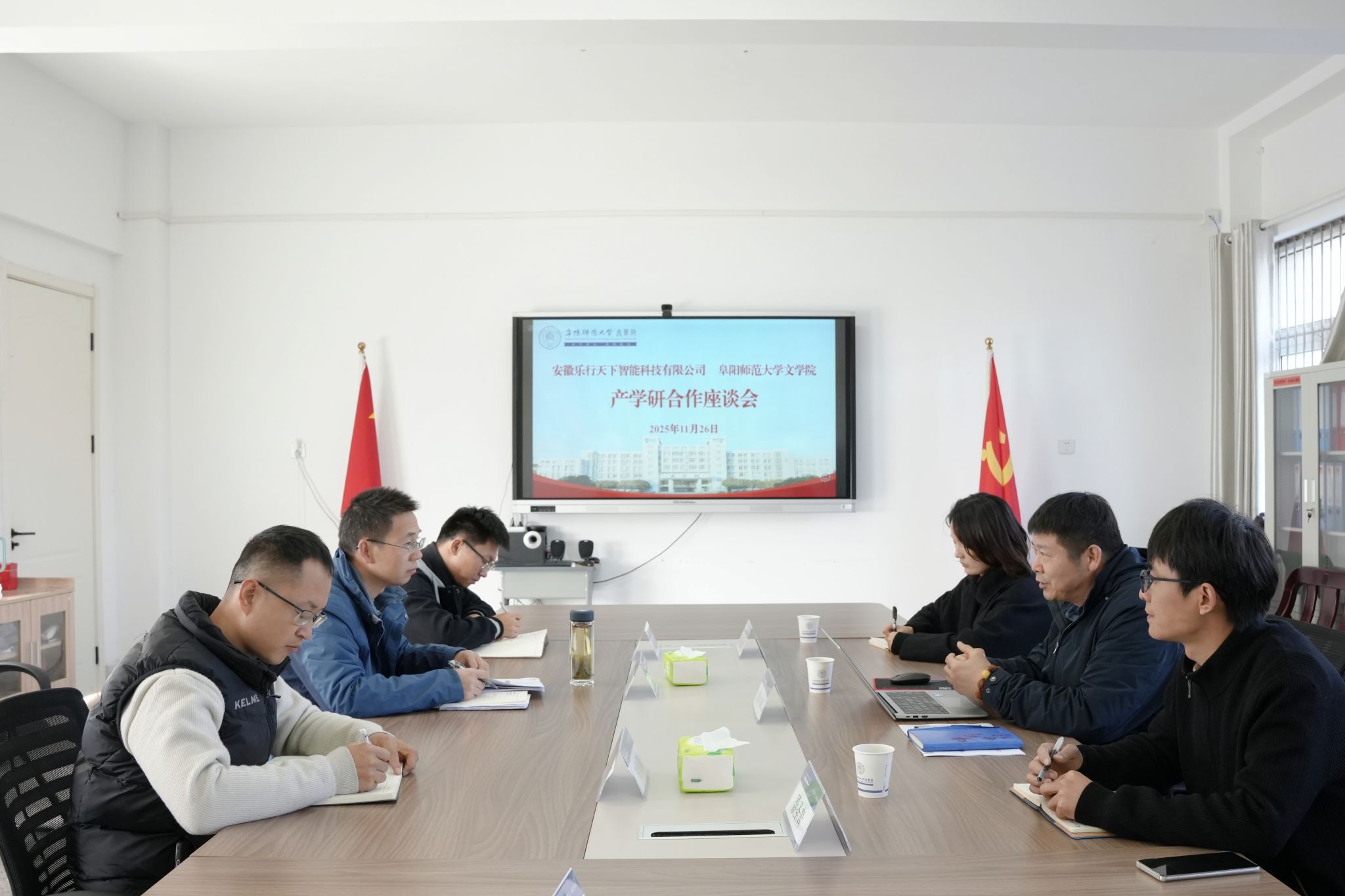 11月26日,安徽乐行天下智能科技有限公司总经理陶中华率队回访文学院,就前期产学研合作意向展开深度磋商。文学院党委书记刘张飞主持座谈会。