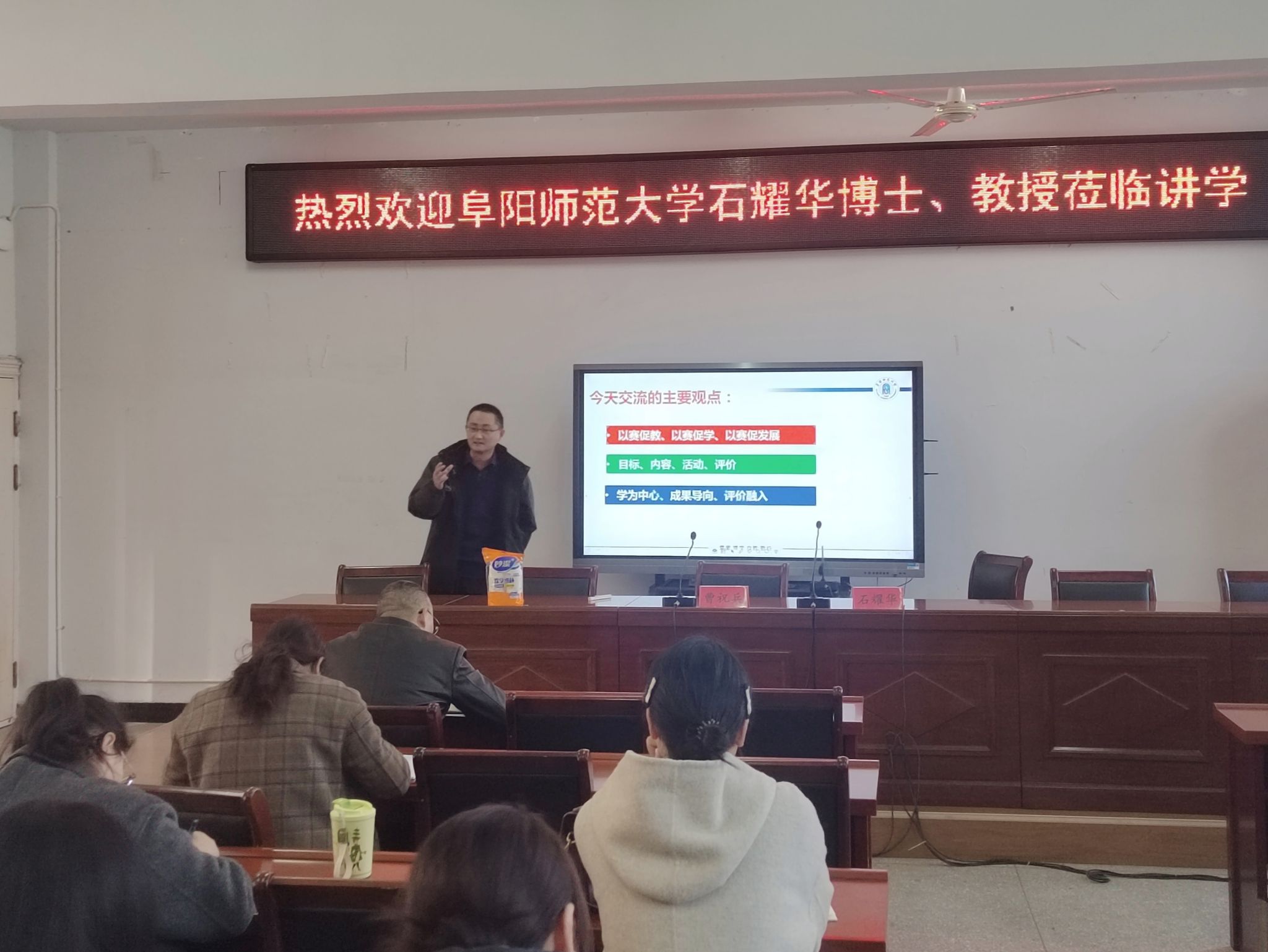 为深入落实皖北基础教育扩容政策要求,充分发挥文学院在基础教育研究与教师专业发展领域的引领作用,切实提升县域教师教学技能与课堂教学质量,11月28日,文学院副教授、硕士生导师石耀华博士受邀赴固镇二中,为固镇县中小学骨干教师作题为《做课·赛课·常态课:异同点与观测点——兼论当今课堂教学评价的几点转向》的专题培训报告。