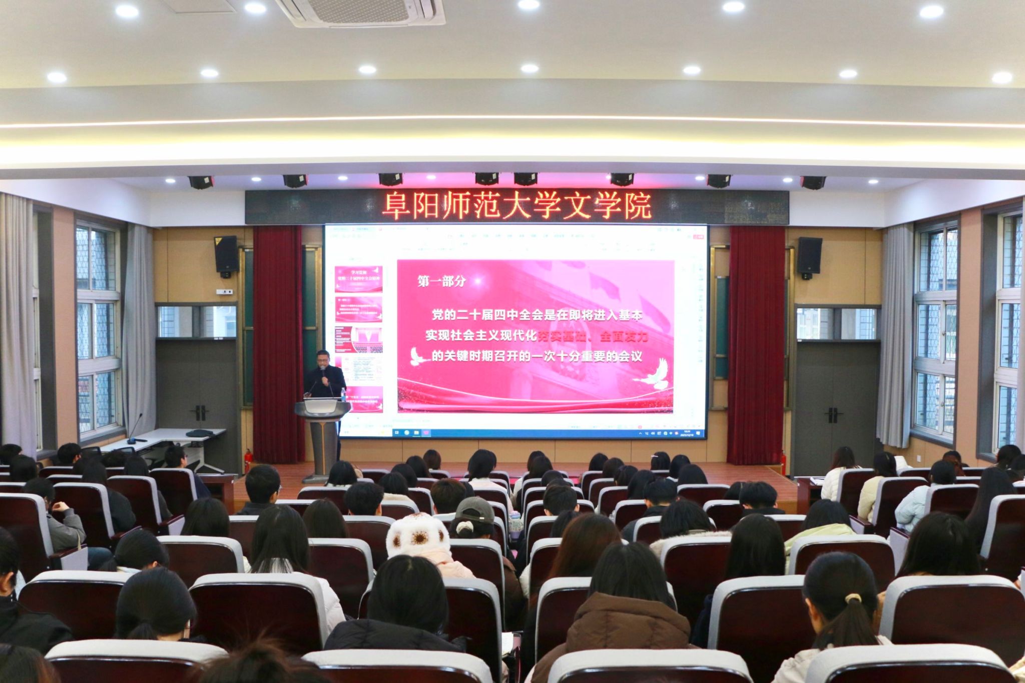 此次宣讲主题鲜明、内容翔实、案例生动,不仅有效深化了文学院师生对党的二十届四中全会精神的理解与把握,更帮助大家清晰认清了国家未来发展蓝图与自身肩负的责任使命。下一步,文学院将持续推动全会精神学习走深走实,引导全体师生切实把思想和行动统一到全会精神上来,以实干担当为强国建设、民族复兴贡献智慧和力量。