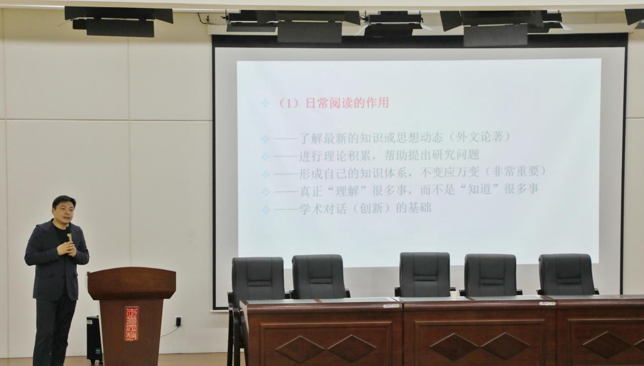 同时他分享了日常阅读的内容和方法,认为研究者要与日常阅读紧密相连,日常阅读具有帮助研究者进行理论积累,形成知识体系,了解最新的知识和思想动态等诸多重要作用。操瑞青教授以诙谐幽默的话语尽显学术研究的魅力与力量,引导同学们思考在新时代背景下自身专业成长之路。