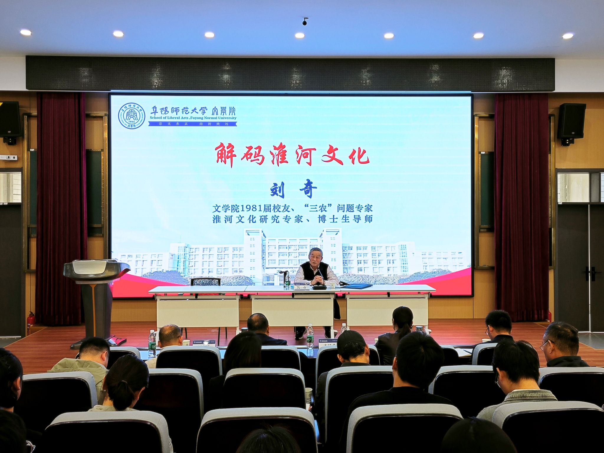 文学院1981届校友刘奇回校作“解码淮河文化”主题报告