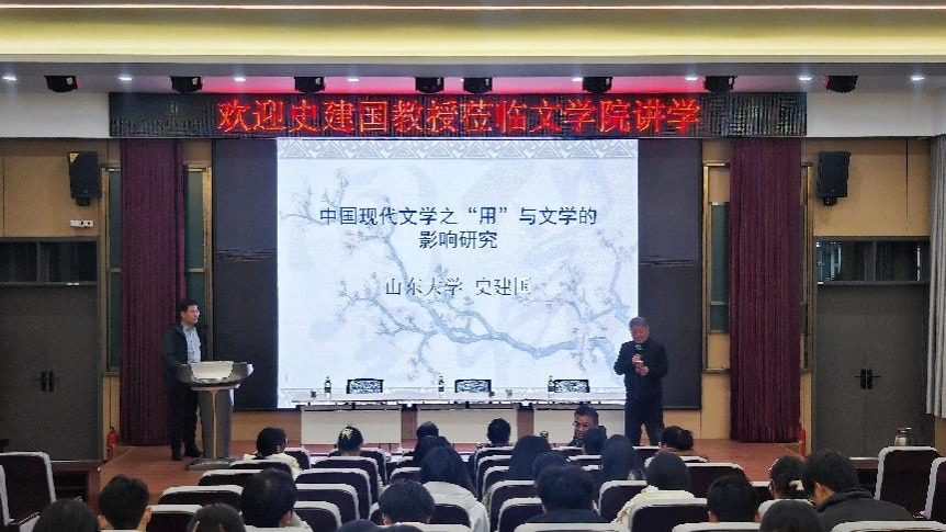 11月17日晚,山东大学文学院教授、博士生导师史建国应我院邀请,在三里桥校园文学院C1报告厅作题为“中国现代文学之‘用’与文学的影响研究”的专题学术报告。讲座由副院长尹奇岭主持,学院党委副书记任竹良、部分教师以及部分本科生、研究生参加。
