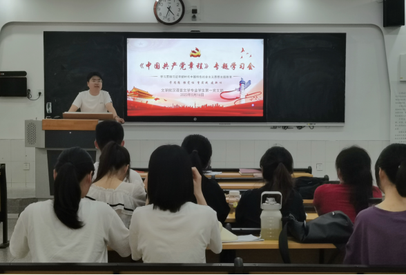 为扎实开展学习贯彻习近平新时代中国特色社会主义思想主题教育,深入学习贯彻习近平新时代中国特色社会主义思想和党的二十大精神,5月16日下午,文学院汉语言文学专业学生第一党支部在景行楼202教室召开《中国共产党章程》专题学习会。学习会由支部书记王洋主持。
