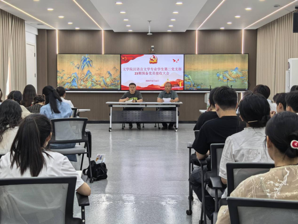6月12日中午,文学院汉语言文学专业学生第二党支部在西湖校区三区B楼102室召开预备党员接收大会,讨论关于苏心雨等15位同志的入党问题。支部全体党员参加。会议由支部书记刘振撼主持。