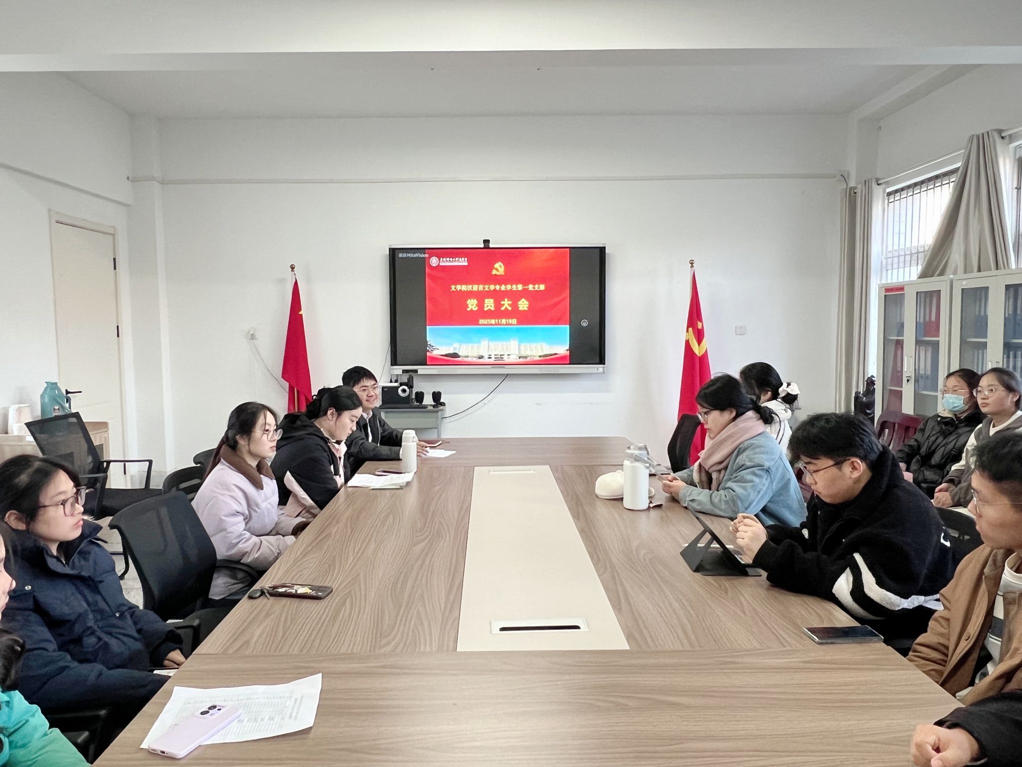 11月19日下午,文学院汉语言文学专业学生第一党支部在学院202会议室召开预备党员转正大会,讨论张雨晴、吴一尘两名同志的转正事宜。会议由党支部书记王洋主持。