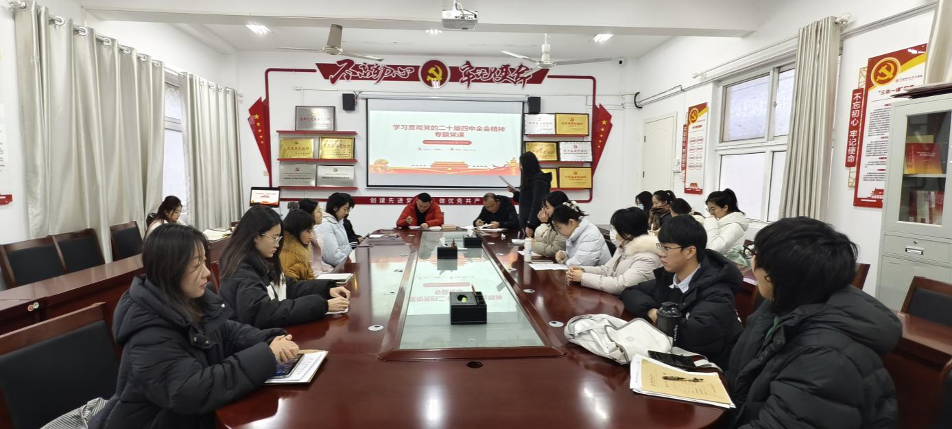 12月26日下午,文学院汉语言文学专业学生第二党支部在三里桥校园B104党员活动室举行学习贯彻党的二十届四中全会精神主题研讨暨党支部书记讲党课活动。活动由党支部书记刘振撼主持,全体党员参加。