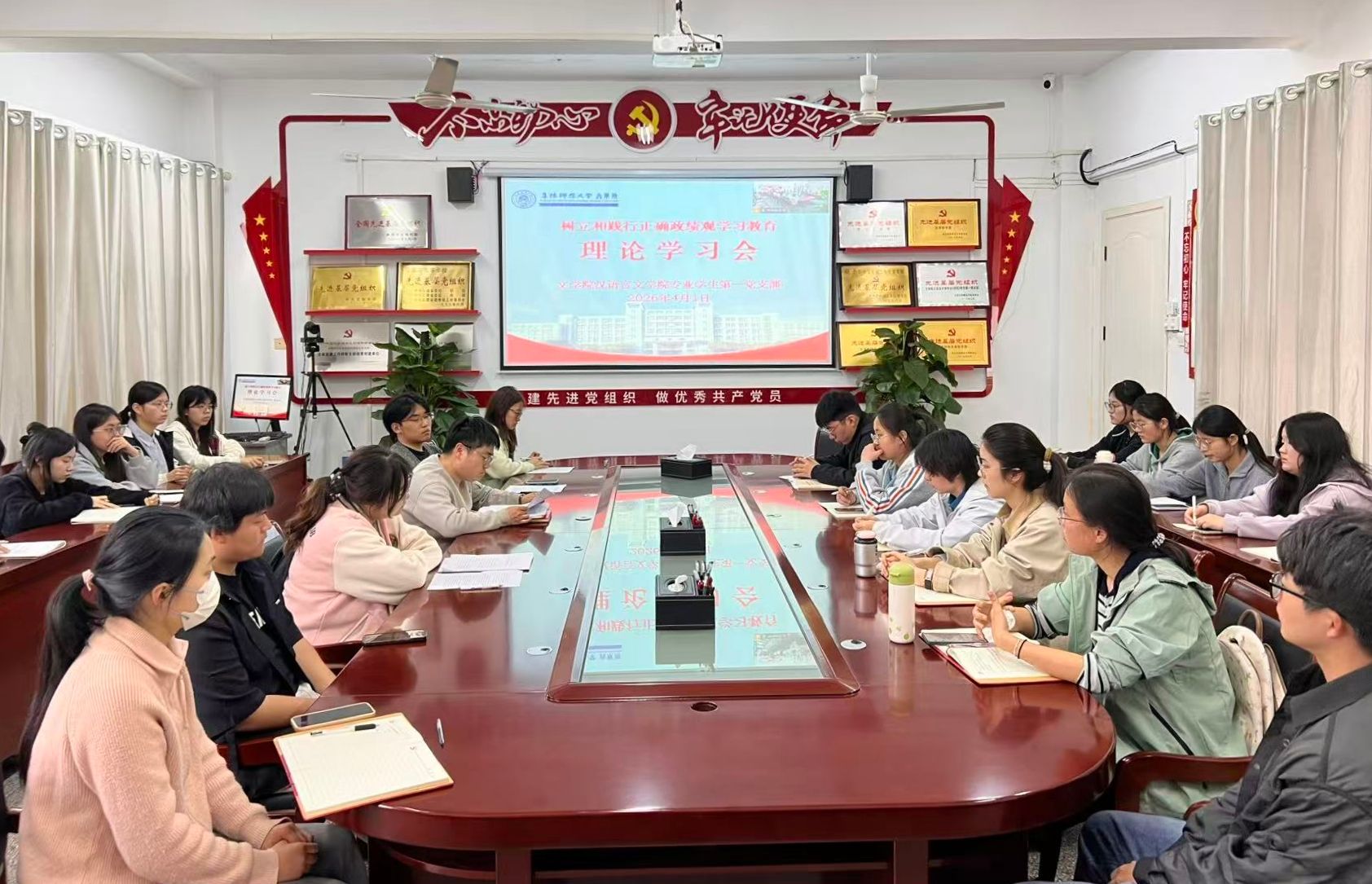 为深入学习贯彻习近平总书记关于树立和践行正确政绩观的重要论述,严格落实学院党委关于树立和践行正确政绩观学习教育有关工作部署,引导全体党员坚定理想信念、锤炼党性修养、端正政绩导向,4月1日下午,文学院汉语言文学专业学生第一党支部组织召开树立和践行正确政绩观学习教育专题学习会。支部全体党员、入党积极分子参加。会议由党支部书记王洋主持。