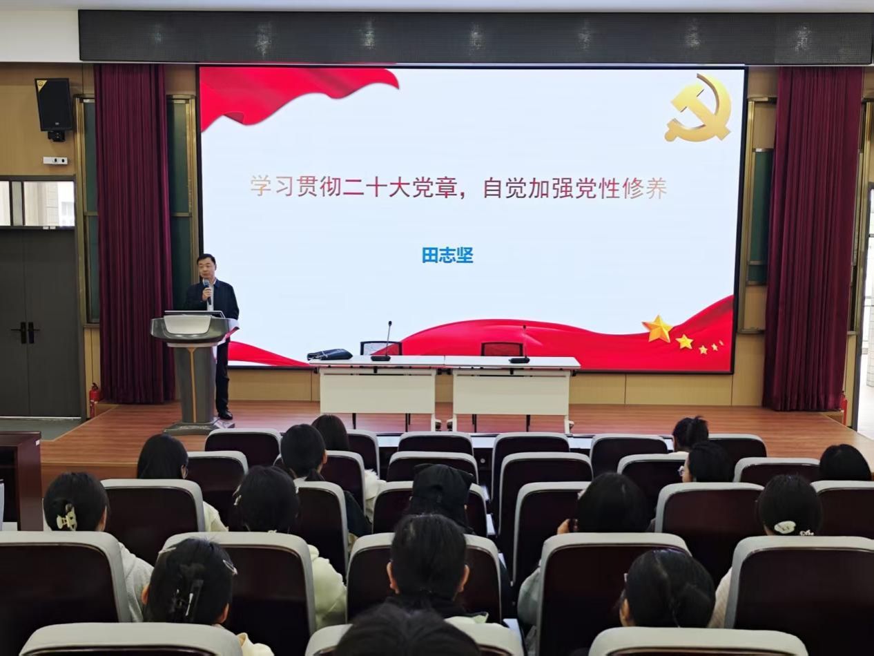 4月12日下午,文学院邀请校党委组织部副部长田志坚为入党积极分子和党员发展对象培训班作“学习尊崇党章,自觉加强党性修养”专题党课报告会。活动由学院党委组织员刘阳主持。