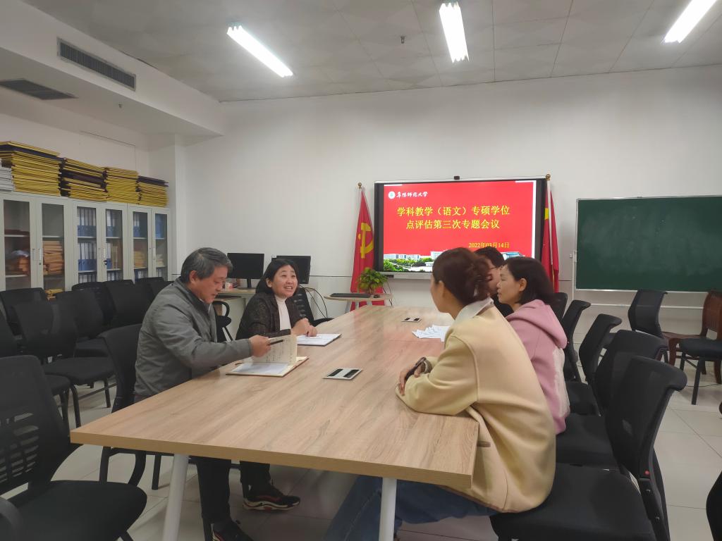3月14日下午五点半,文学院在景行楼826会议室召开了学科教学(语文)学位点评估工作第三次会议。 院长高群、副院长尹奇岭以及学位点评估支撑材料组成员参会。