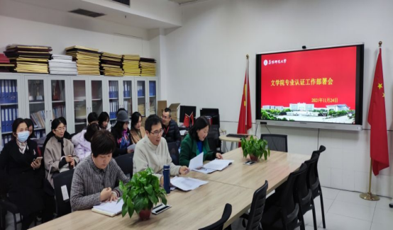 为全力推进我院汉语言文学师范专业认证准备工作,提高全院教职工的参与意识和重视程度,11月24日下午,文学院在景行楼826会议室召开了汉语言文学师范专业认证工作推进会。会议由党委书记陈旭阳主持,学院领导班子成员及全体教职工参加会议。