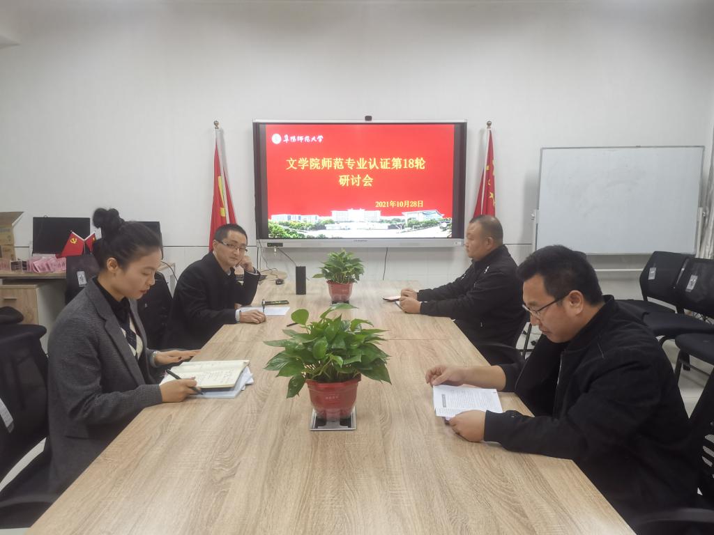 10月28日下午,文学院2021年汉语言文学师范类专业认证工作第18轮研讨会在景行楼826进行。认证专业责任人、认证自评报告撰写组成员、支撑材料组成员、认证专业教师代表参会。