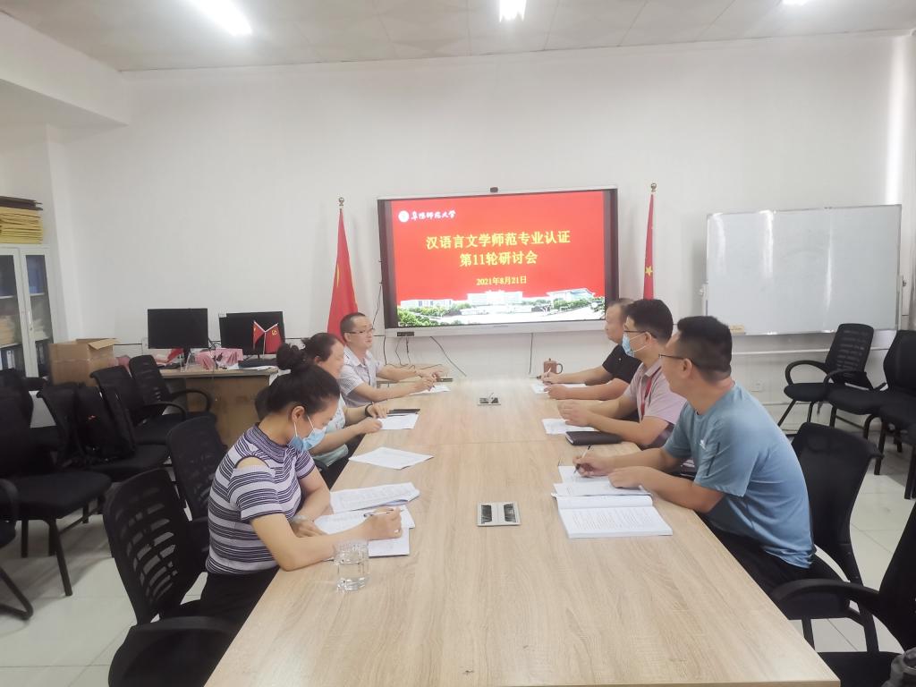 8月21日下午,文学院汉语言文学专业进行了2021年师范类专业认证工作第十一轮研讨会议。专业责任人、自评报告各模块撰写人、材料组负责人、认证专业教师代表和教务秘书参会。