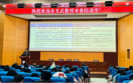 12月17日晚上七点,江苏师范大学语言科学与艺术学院常务副院长余光武教授在我校F楼报告厅为我院师生做了题为《基于语言特区理论的语言创新实证研究》的学术讲座。此次讲座由文学院院长高群教授主持,文学院部分教师以及在校研究生和本科生三百多人参加了讲座。