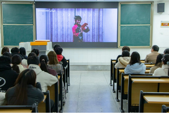 开幕式后,集体观看了微纪录片《青年志,戏曲魂》。该片由文学院学生梁慧婷、谭昇、翁洁等人拍摄创作,讲述了非遗传承人贡健强运用短视频传播泗州戏,让传统文化借助新媒体焕发新光彩的故事。该片曾获安徽省大学生微电影一等奖。