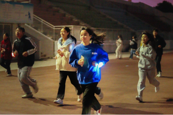 活动前,同学们提前到达操场签到并领取荧光手环配饰。校园夜跑活动于19时正式拉开帷幕,百余名同学手戴荧光手环,在夜色与光影的交织中,尽情奔跑在跑道上。同学们用荧光点亮跑道,用运动激扬青春。本次夜跑活动将持续一周,通过手机运动软件打卡记录进行。