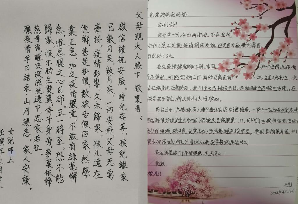 为进一步落实习近平总书记关于重视家庭、家教、家风的重要讲话精神,营造良好的家风,并积极响应社会做好防控疫情的号召,文学院开展“一封家书寄相思 一段文字传真情”征文活动。一纸家书,情意绵绵纸短情长,诉说着师生的相思与衷肠。短短的数行家书,传递着信心,传递着温暖,更传递着爱和希望。