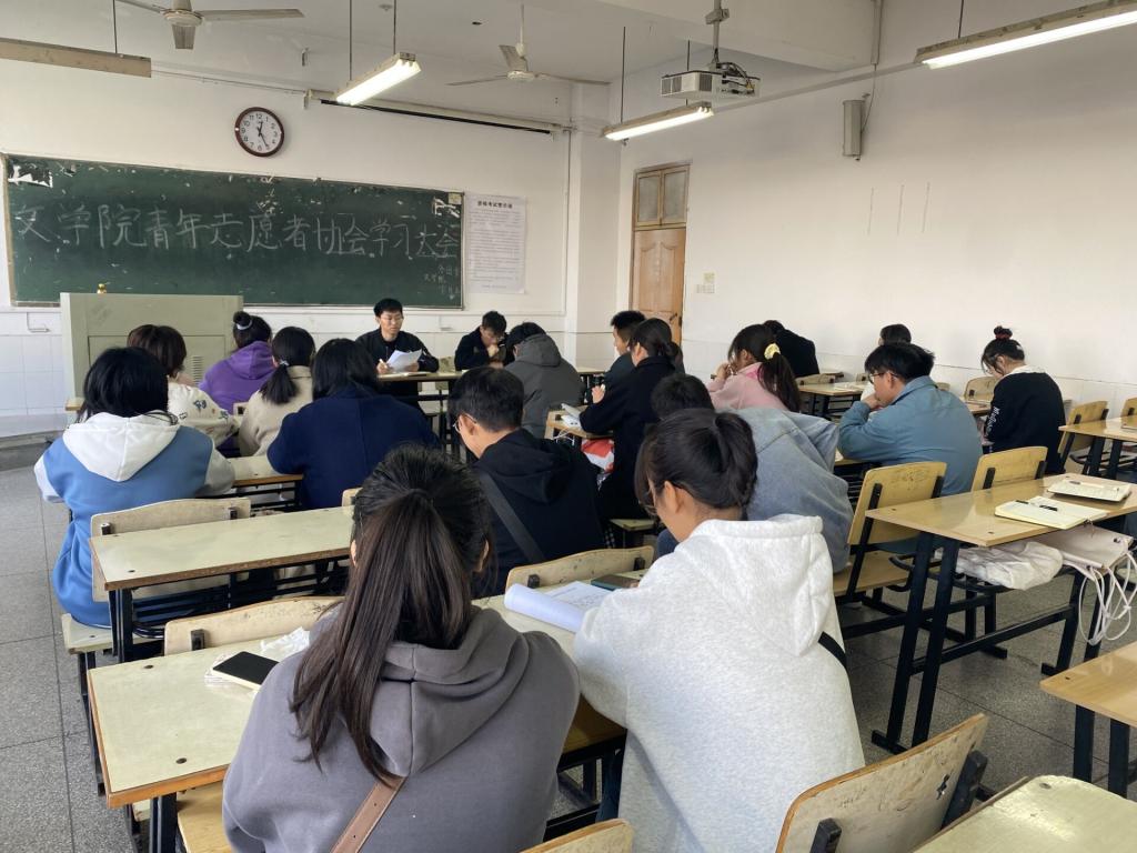 会上,尚志会首先向大家介绍文学院青年志愿者协会的发展历程,着重强调了“青年志愿者协会是什么”以及“做什么”这两个问题。随后,文学院青年志愿者协会会长李勇豪带领大家学习《中国青年志愿者章程》,强调作为一名志愿者,应奉行“奉献、友爱、互助、进步”的志愿精神,坚持党的领导和团的指导,不断提升志愿者个人的道德水平和服务能力。
