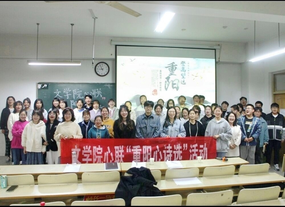 10月26日晚,文学院心理委员联合会在景行楼303教室举办了“重阳心诗选”活动。文学院专任教师丁凡、心联指导老师刘亚辉以及辅导员戴倩雯老师出席本次活动。
