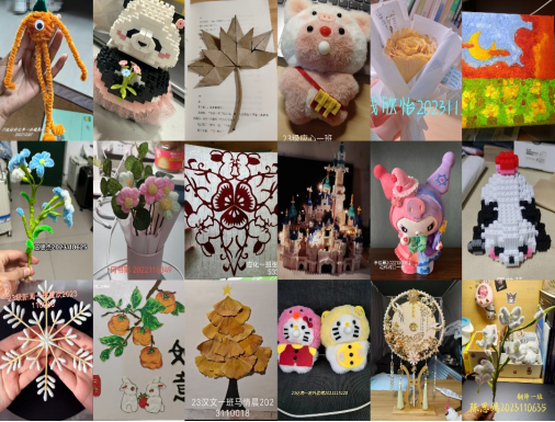 为丰富大学生课余生活,锻炼大学生的动手制作能力,2023年12月13日,大学生DIY手工俱乐部于线上开展了以“巧拼妙思,艺起趣想”为主题的手工制作活动。
