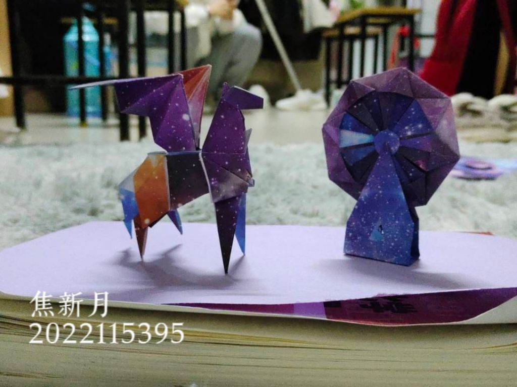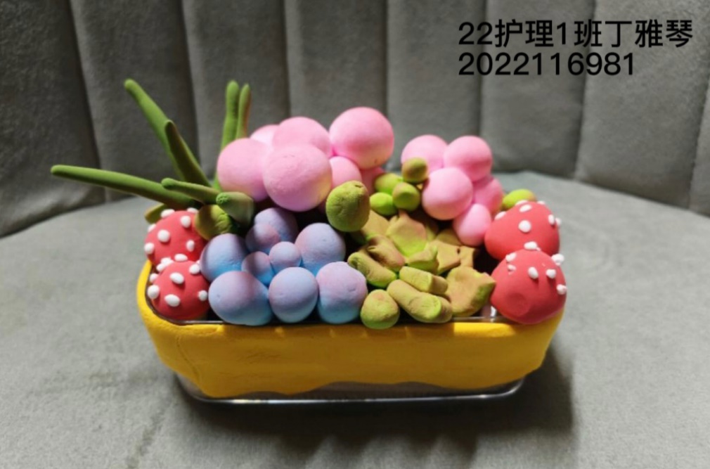 活动后期,社团统一发放了粘土、扭扭棒、彩纸等活动材料,由社团成员进行自由创作,培养成员的动手能力,激发创新意识。同学们有的用黏土捏出多肉植物小型盆栽,鲜红的蘑菇和多肉植物簇拥在一起生机盎然;有的用星空彩纸折出独角兽和摩天轮,梦幻与星空交织在一起美轮美奂;有的用扭扭棒折出鲜花或者眼镜,带来不一样的质感体验。最后大家把作品照片上传到活动群中,一起欣赏作品交流经验。
