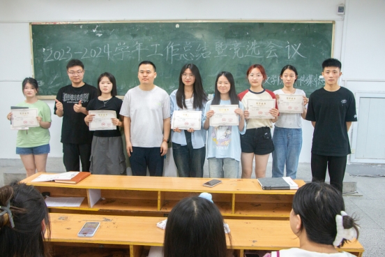 工作总结汇报结束后,有意愿参与竞选的部员、部长轮流上台进行竞选演讲,坚定的话语尽显出他们昂扬向上、积极进取的风貌。大会最后,刘振撼为优秀部长和优秀部员颁发证书并合影留念。