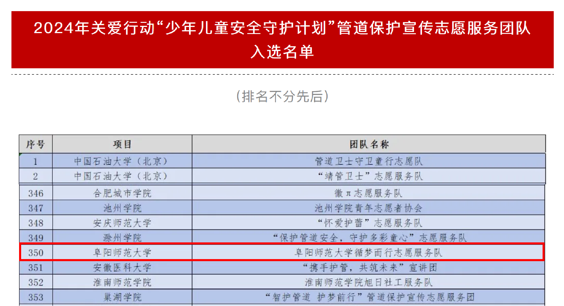 近日,团中央青年志愿者行动指导中心、中国少年儿童新闻出版总社有限公司联合国家石油天然气管网集团有限公司公布了2024年关爱行动“少年儿童安全守护计划”管道保护宣传志愿服务团队入选名单,文学院组建的志愿服务团队成功入选。