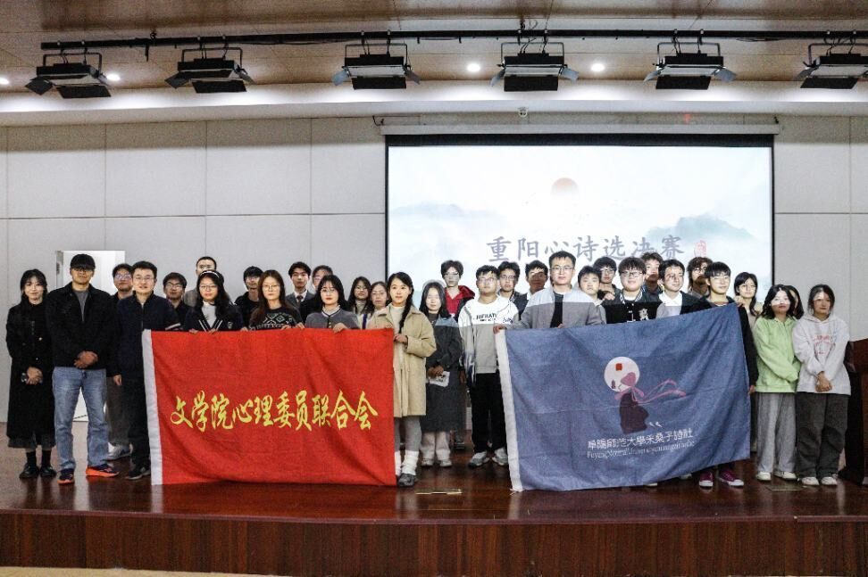 诗韵悠扬,情满重阳。为弘扬中华民族优秀传统文化,激发学生们对诗词的热爱与传承,2024年11月6日,由文学院“寻影知心”心理辅导站联合采桑子诗社举办的重阳心诗选活动在西湖校区汉风楼报告厅圆满落幕。文学院“寻影知心”心理辅导站指导老师刘阳、文学院中国古代文学教研室专任老师丁凡、赵友永,“寻影知心”心理辅导站、采桑子诗社部分学生代表及各学院参赛选手等共同参与此次活动。师生们共聚一堂,共同见证这场融合了青春激情与诗词情怀的文化盛宴。