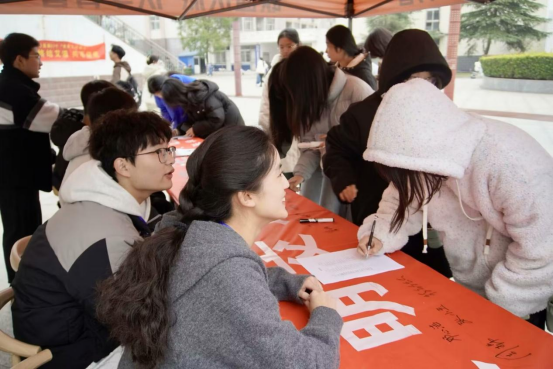 为了积极响应国家第十三个“全国交通安全日”建设号召,深入贯彻落实习近平法治思想,做好交通安全教育宣传工作,文学院“寻影知心”心理辅导站于12月4日在三里桥校园食堂门口举办以“文明交通 携手共创”为主题的签名活动。