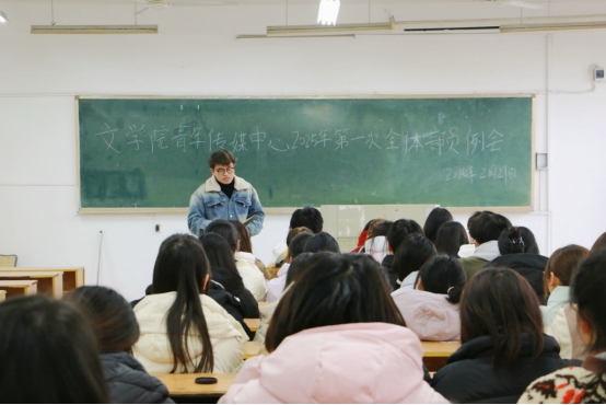 为促进新学期工作顺利开展,推动工作高效协同推进,2月21日上午,文学院青年传媒中心在西湖校区三区教学A楼212教室召开2025年春季学期第一次全体例会,青年传媒中心各负责人及全体部员共同参加此次例会。