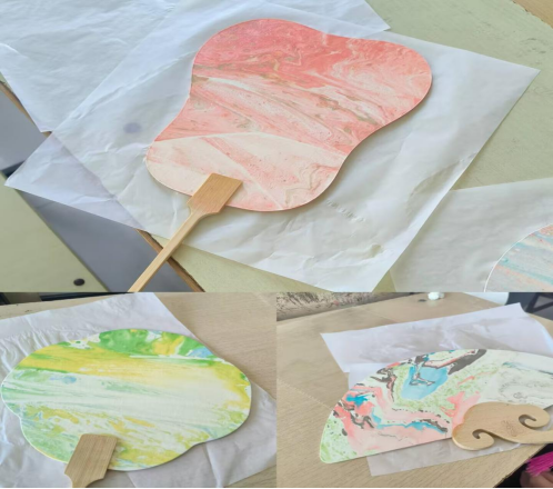 工作人员详细介绍了折扇的制作步骤和注意事项,并展示了提前制作好的精美样本。随后,学生们在社团负责人的指导下,开始动手制作自己的折扇。他们充分发挥想象力,用颜料在扇面上绘制出各种图案,有的画上了山水风景,有的画上了卡通形象,还有的写上了自己喜欢的诗词。