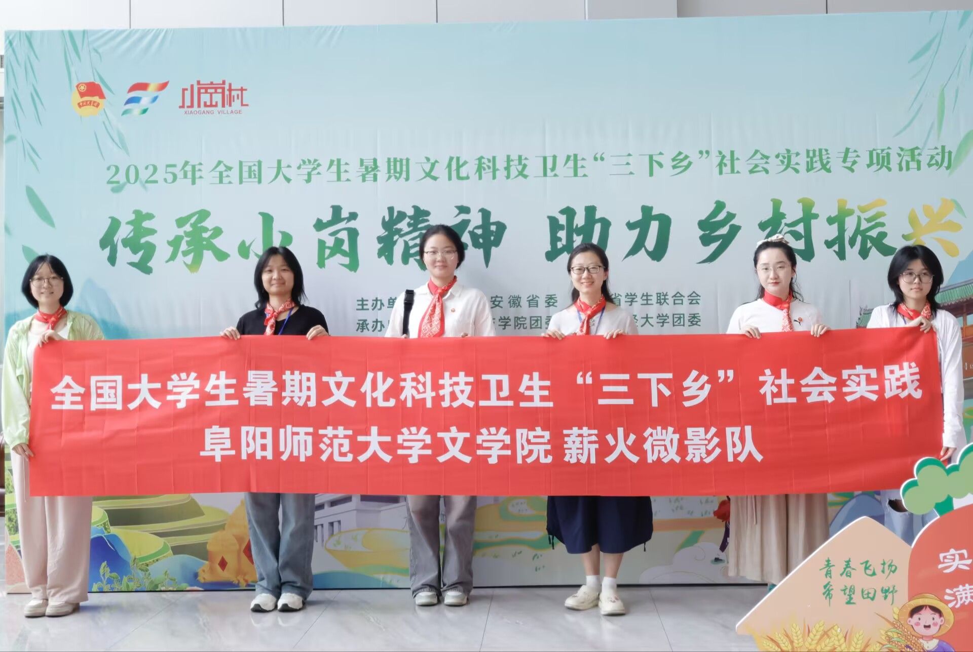 2025年7月14日至18日,文学院“薪火微影队”赴安徽凤阳县小岗村参加全国大学生暑期“三下乡”社会实践“传承小岗精神 助力乡村振兴”专项活动。团队成员循着“敢闯敢试、敢为人先”的改革足迹,在生态农业园田埂、企业电商直播间及村民院落访谈中,探寻小岗精神与乡村振兴的深度融合,深入挖掘其时代内涵。