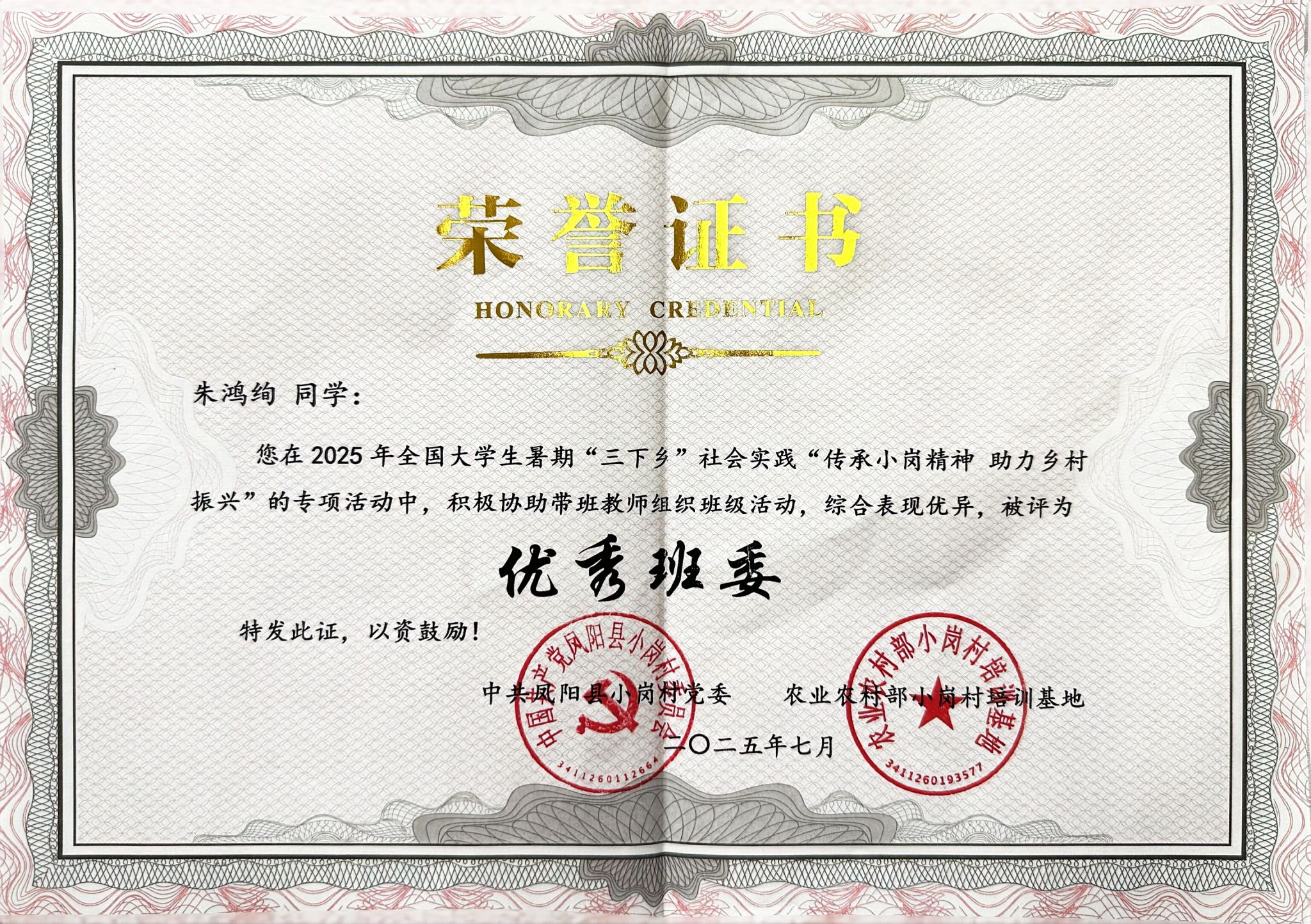 文学院学子在全国大学生“传承小岗精神 助力乡村振兴”暑期“三下乡”专项活动中受表彰