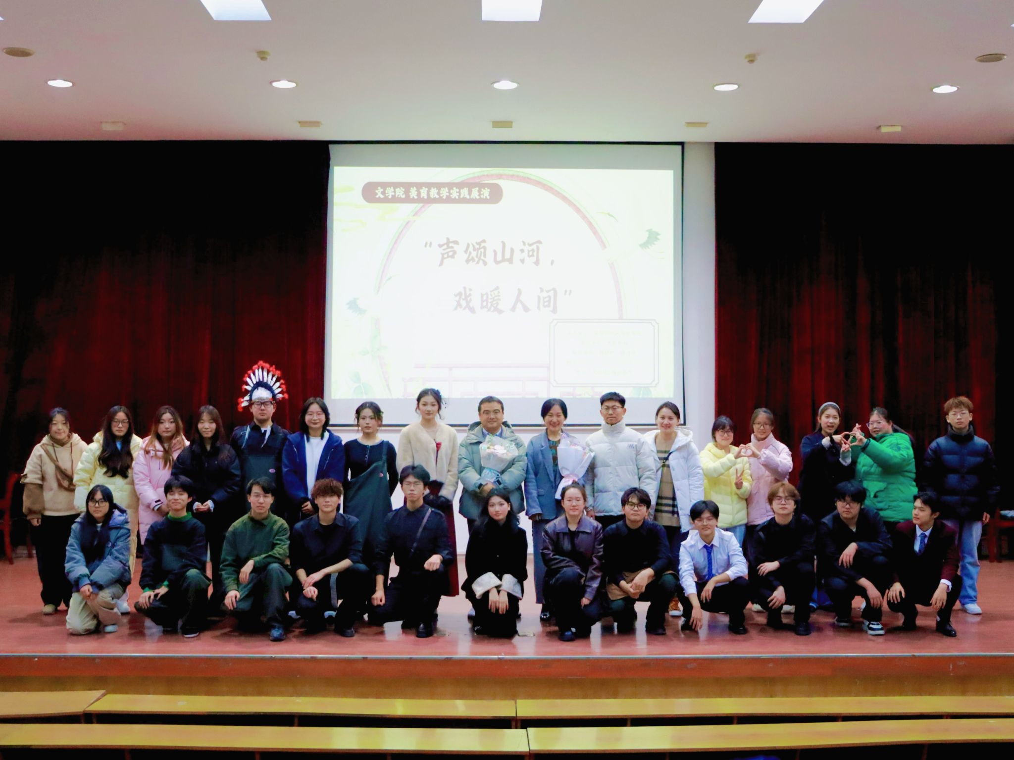 12月19日晚,文学院“声颂山河,戏暖人间”美育实践展演在三里桥校园D楼报告厅举行。文学院党委书记刘张飞、党委副书记任竹良和300余名师生共同观看了演出。