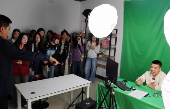 在公司直播间整体运营负责人程飞鸿的带领和讲解下,学生们分批次分别参观了制片室、直播间等新媒体办公区域,亲自观看了直播间的各项设施和流程,对电商带货直播有了更加直观的认识。