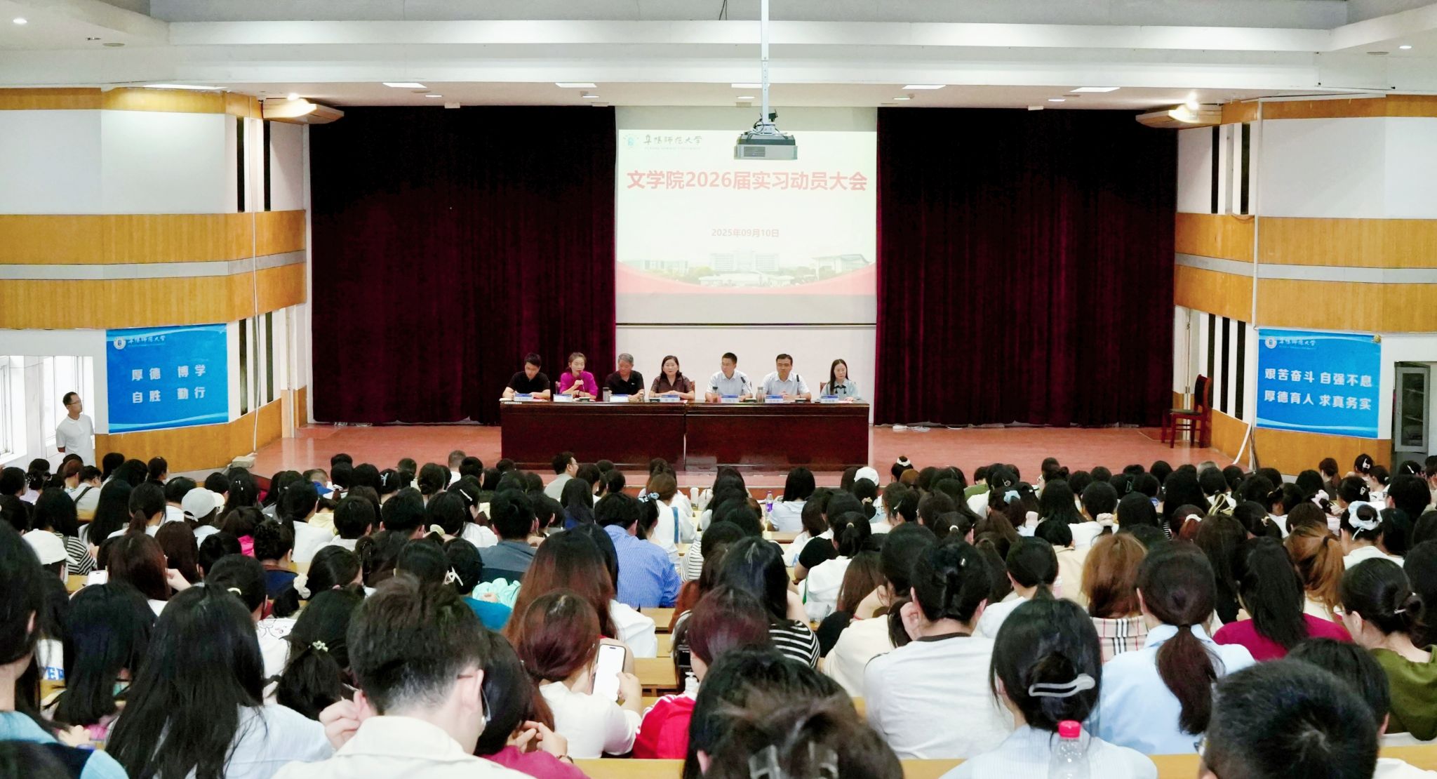 为深化实践育人成效,全面检验应用型人才培养质量,9月10日下午,文学院在西湖三区D楼报告厅召开2026届本科生实习动员大会。文学院党政领导、各专业负责人、毕业班辅导员、全体实习指导教师以及2026届全体本科毕业生参加会议,会议由副院长张薇薇主持。