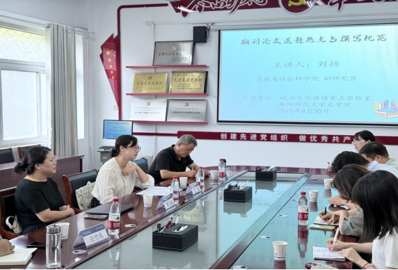 8月30日下午,皖北文化传播重点实验室特邀吉林省社会科学院副研究员刘扬作“期刊论文选题要点与撰写规范”专题学术讲座。讲座由文学院副院长尹奇岭教授主持,文学院部分教师、研究生及本科生代表参会学习。