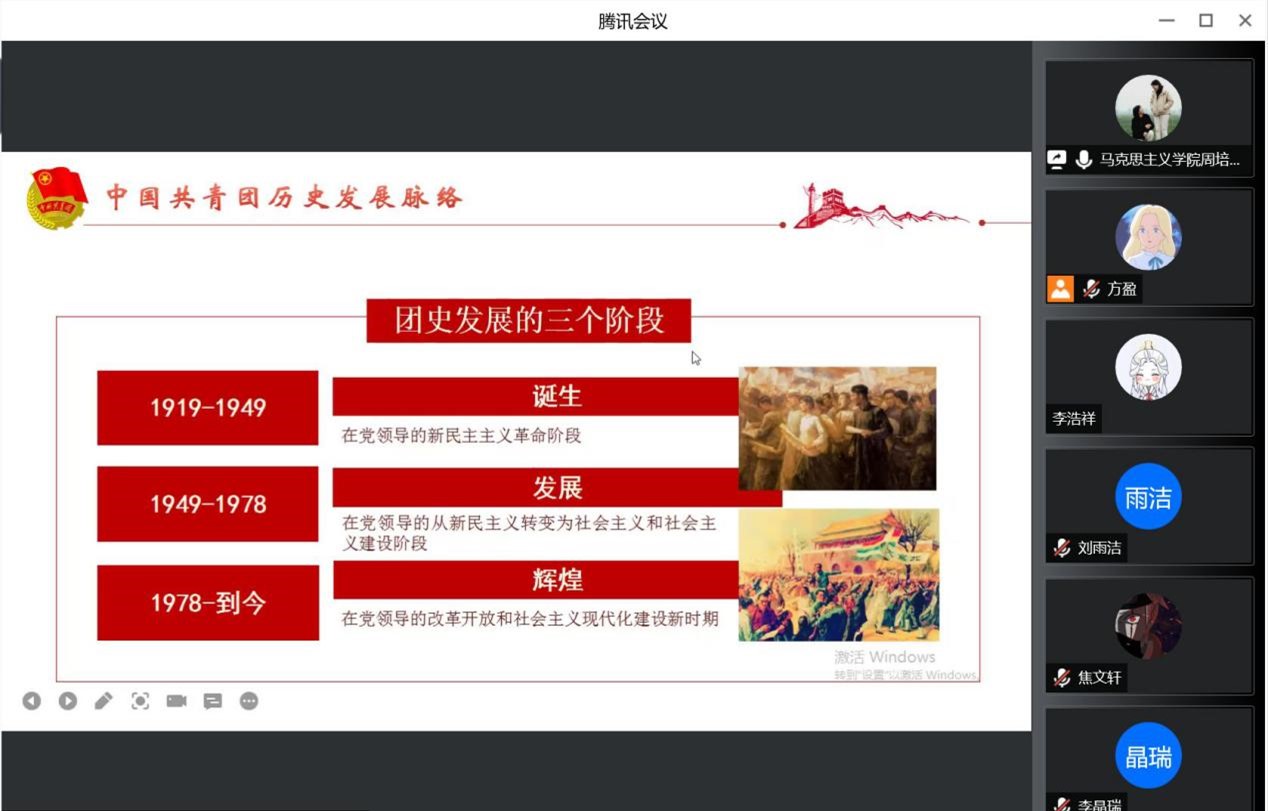 在五四青年节来临之际,文学院举办了“学习百年团史,凝聚奋进力量”线上专题报告会。以青年之力传递青年声音,带领广大青年和团干部回顾中国共青团百年光辉岁月,追寻信仰之光,坚定理想信念,勇担青春使命,在新时代的征程中留下青春奋斗的鲜明印记。