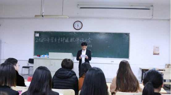 3月23日下午18时,文学院在景行楼203教室举行2020年度学生干部述职大会。党委副书记徐春婷,团委负责人戴倩雯,团委副书记刘亚辉,辅导员刘阳、马旖雯等参加会议。会议由刘亚辉主持。