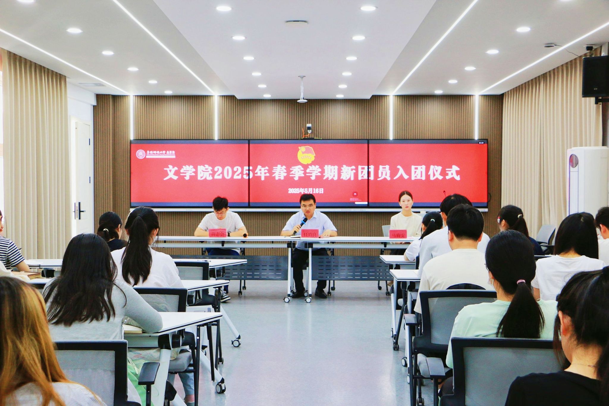 5月16日上午,文学院于西湖校区三区B楼102会议室举行2025年春季学期新团员入团仪式。文学院党委副书记任竹良、文学院团委挂职副书记马旖雯、各班级团干部和新老团员代表参加仪式活动。文学院团委负责人尚志会主持仪式。
