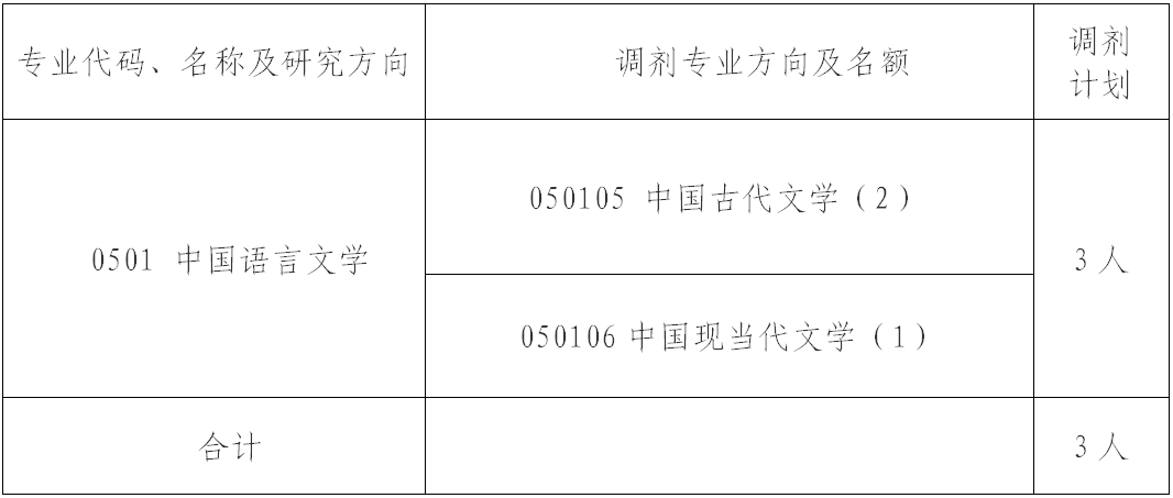 我院接受调剂计划共 3 人,按学科(专业)分配调剂名额,具体如下表: